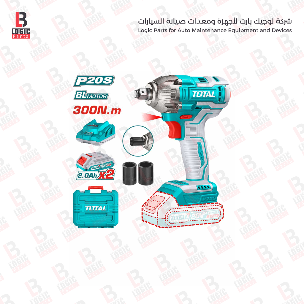 دريل كفرات بطارية 20vبشنطة مع بطاريتين total
